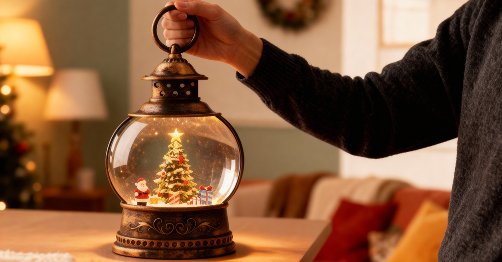 ✅ Swirling Snowfall Effect - Inside each lantern, a gentle current keeps the water and snowflakes in constant motion. Watch as snow swirls softly around a hand-painted Christmas scene that never settles. The mesmerizing effect captures attention and brings the magic of a real snowfall indoors.